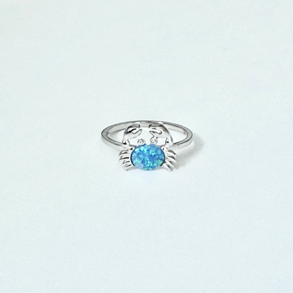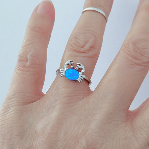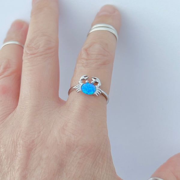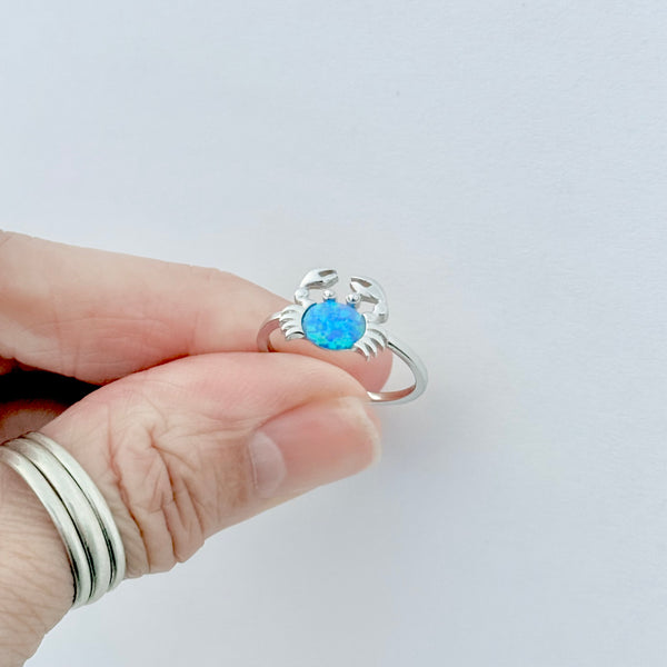 Sterling silver blue lab opal crab ring, pinky ring, index ring, thumb ring, October birthstone, silver ring, crab ring, opal ring, boho ring, dainty ring, beach ring, ocean ring, 925 stamped