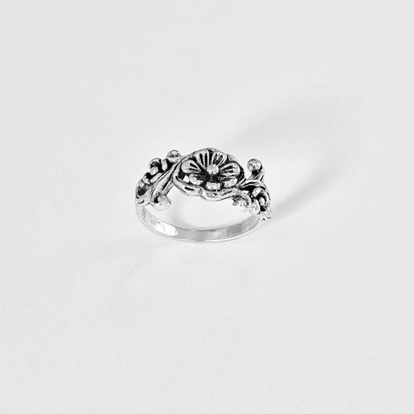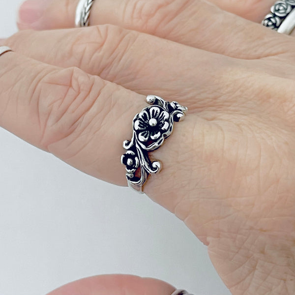 Sterling silver flower ring with swirls, dainty ring, floral ring, flowers jewelry, 925 stamped
