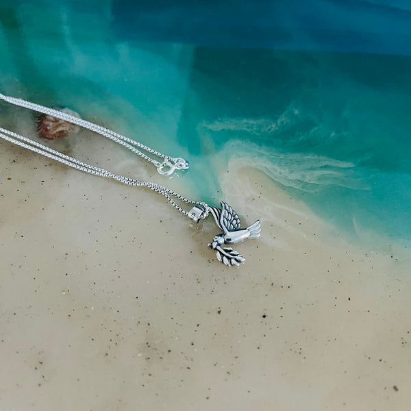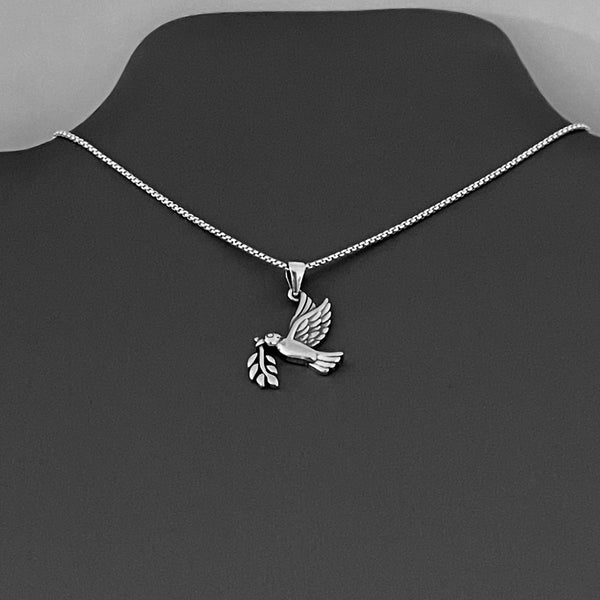 Sterling Silver Olive Branch and Dove Necklace, Silver Bird Chain, Religious Jewelry