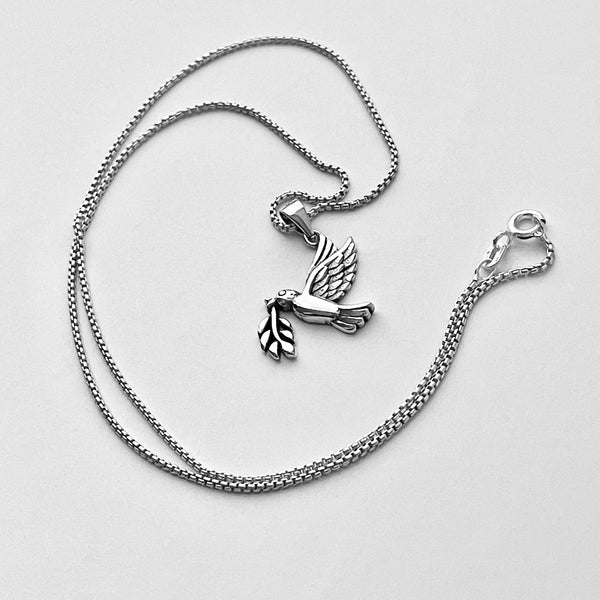 Sterling silver dove olive branch pendant with Italian silver box chain necklace, silver necklace, bird necklace, tree necklace, boho necklace, religious necklace, 925 stamped
