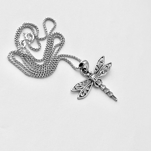 sterling silver filigree dragonfly pendant with Italian silver box chain necklace, silver necklace, silver pendant, dragonfly necklace, spirit bug jewelry, 925 stamped