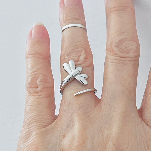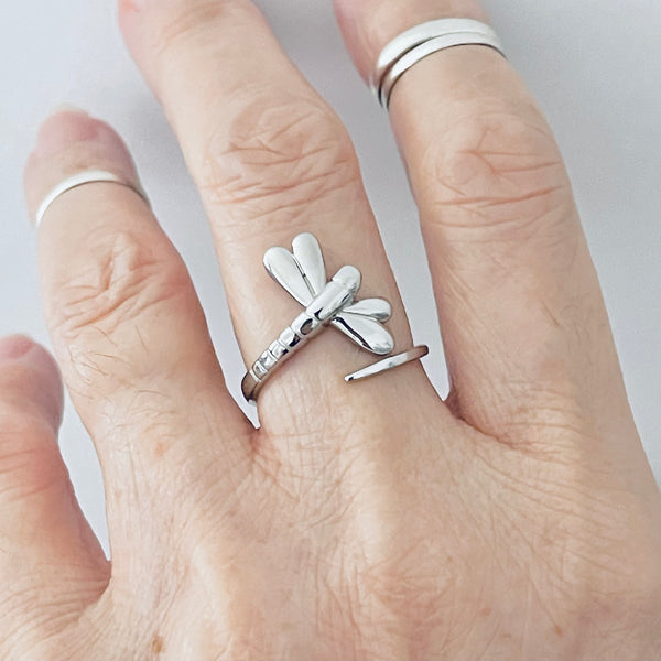Sterling silver dragonfly ring, toe ring, midi ring, pinky ring, index ring, thumb ring, silver rings, adjustable ring, statement ring, spirit bugs, 925 stamped