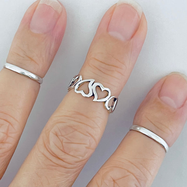 Sterling Silver Heart Toe Ring, Midi Ring, Pinky Ring, Knuckle Ring, Silver Ring, Boho Ring, Love Ring, 925 Stamped