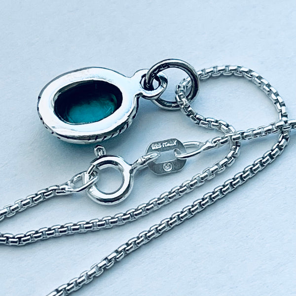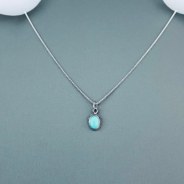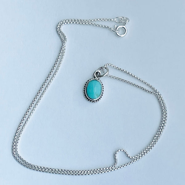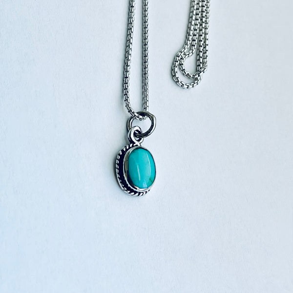 Sterling silver small oval synthetic turquoise pendant with Italian silver box chain necklace, silver necklace, boho necklace, stone necklace, turquoise chains, turquoise pendant, 925 stamped