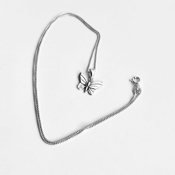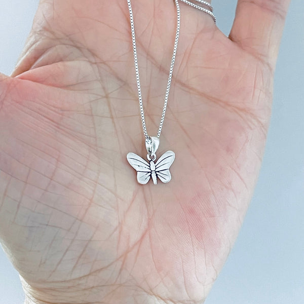 sterling silver small butterfly pendant with Italian silver box chain necklace, butterfly necklace, spirit necklace, bug necklace, 925 stamped