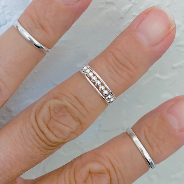 Sterling silver high polish beads toe ring, midi ring, pinky ring, knuckle ring, adjustable ring, fashion ring, silver rings, boho ring, bead ring, 925 stamped